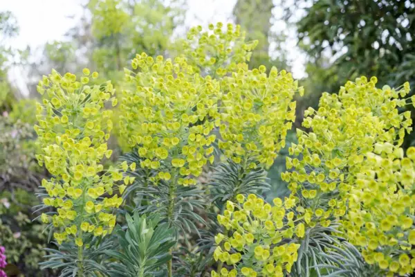 Euphorbia Characias תת. vulphenia הוא רב שנתי סואן שיש לו עלווה כחולה-ירוקה כל השנה. הוא נמצא באביב על ידי ראשי פרחים ירוקים-סיד, ומוסיף זינג לשמש או צל קל.