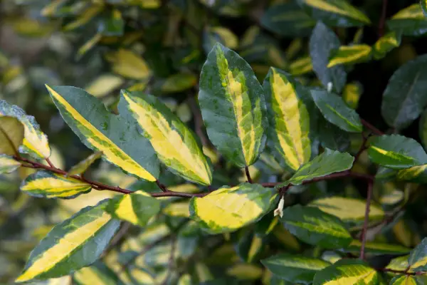 כמה צורות של Elaeaagnus הם מגוונים, כולל Elaeaagnus pungens 'Maculata', שיש בו עלים מוזהבים עם שוליים ירוקים לא סדירים. זה הופך צמח עלווה חורפי צבעוני. צמח באדמה סחוטה ופורה בשמש מלאה או בצל קל.