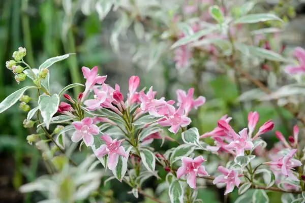 ווייגלה florida 'Variegata' הוא שיח קומפקטי עם קרם אטרקטיבי ועלים ירוקים המהווים תכונה לפני ואחרי הפרחים היפים והורודים בצורת פעמון מופיעים בקיץ. צמח במקום חם ושמש.