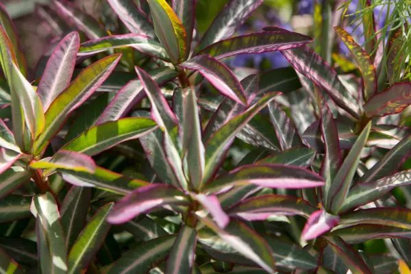 אופורביאס יש עלווה אטרקטיבית ויכולה להוסיף מבנה לגינה. העלים של אופורביה מרטיני 'אסקוט קשת' emerge with a pink flush and develop a red-marked, creamy yellow margin with age. They may also develop pink colouring in winter.